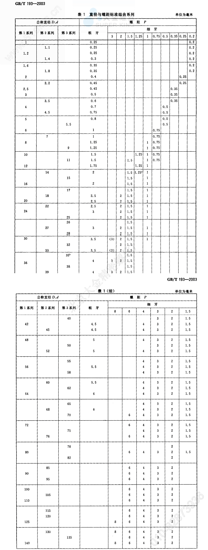 — GBT 193-2003 普通螺纹 直径与螺距系列;